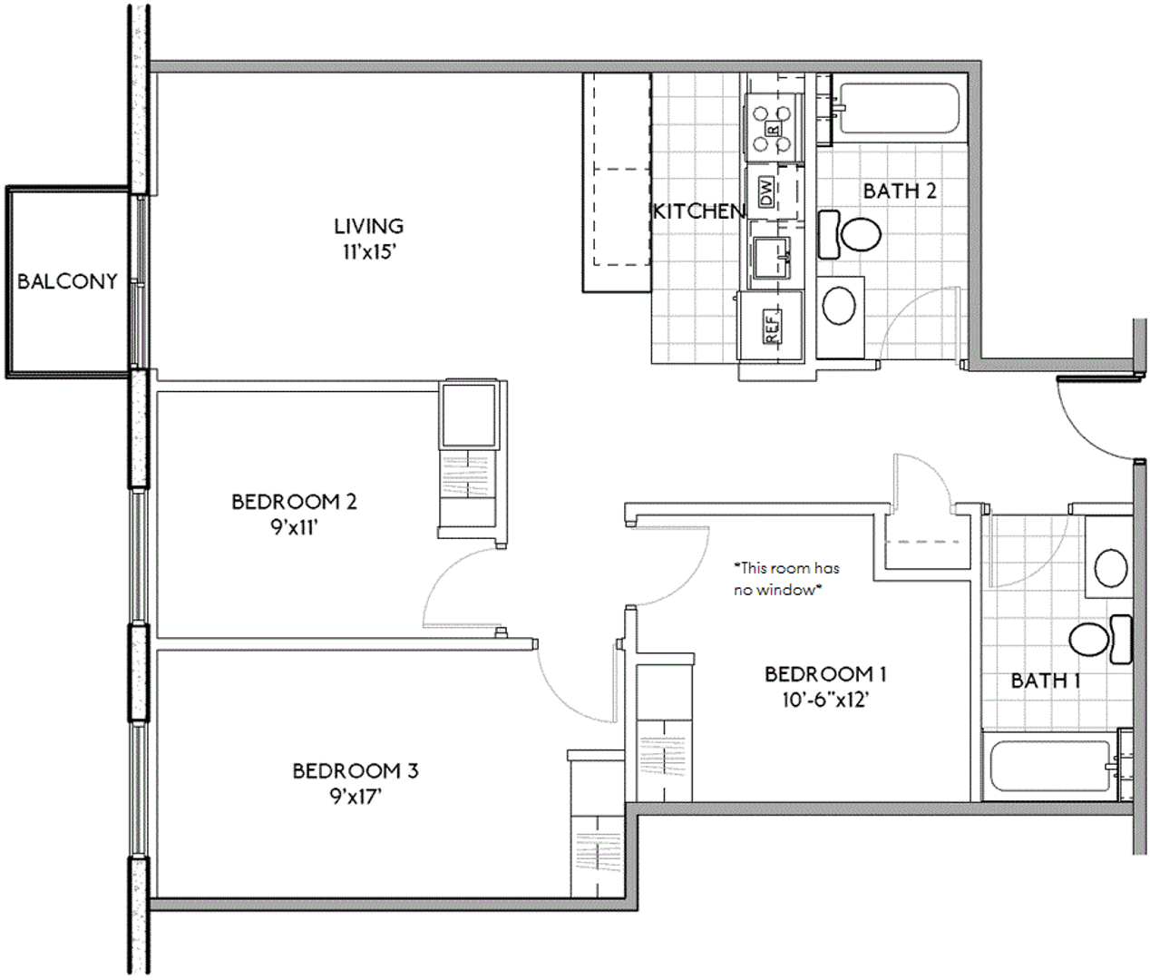 Spacious 3bd/2ba floorplan with a balcony!