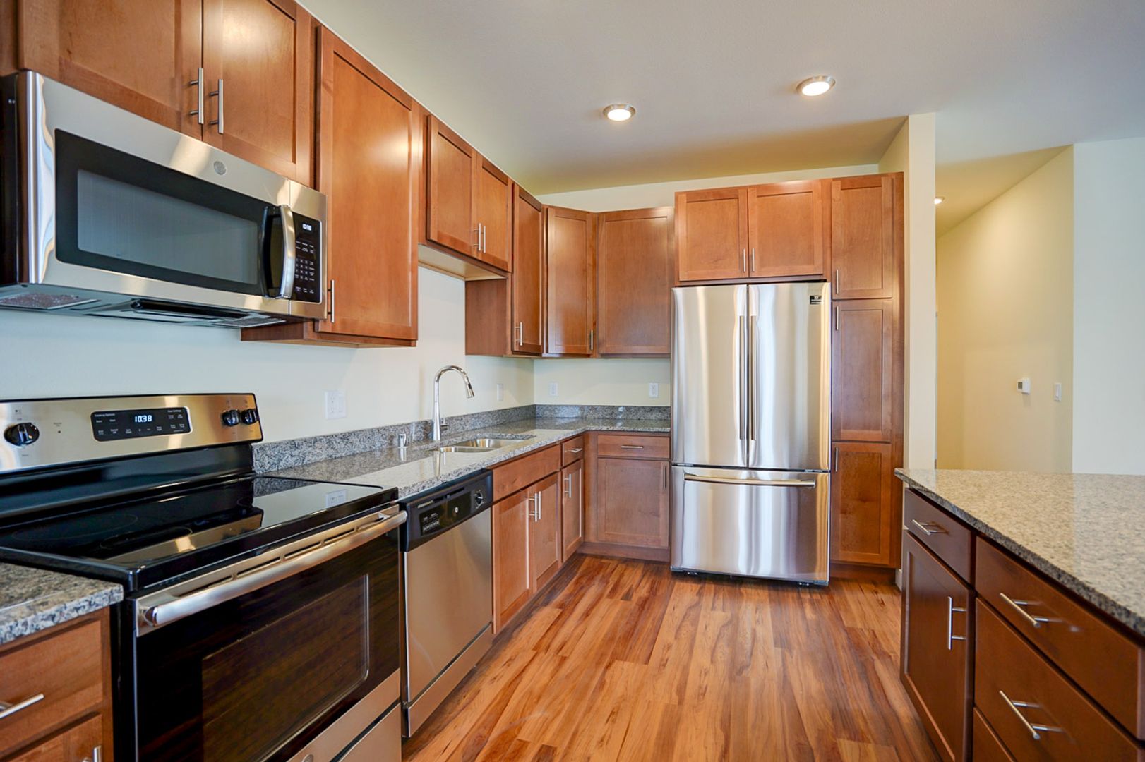 Welcome to Stonewood - 1270, a stunning two-bedroom, two-bathroom townhome located in the vibrant community of Sun Prairie, WI. This apartment offers a unique blend of comfort and style with its hardwood floors and granite countertops. The open kitchen floor plan is perfect for those who love to cook and entertain, while the abundance of natural light creates a warm and inviting atmosphere. The unit comes with a washer and dryer for your convenience, and a private entry for added security. For those with pets, you'll be pleased to know that Stonewood - 1270 is pet-friendly. The apartment also features a private garage, providing secure parking and additional storage space. Step outside to your own walk-out patio, a perfect spot for morning coffee or evening relaxation. Experience the perfect blend of luxury and convenience at Stonewood - 1270.