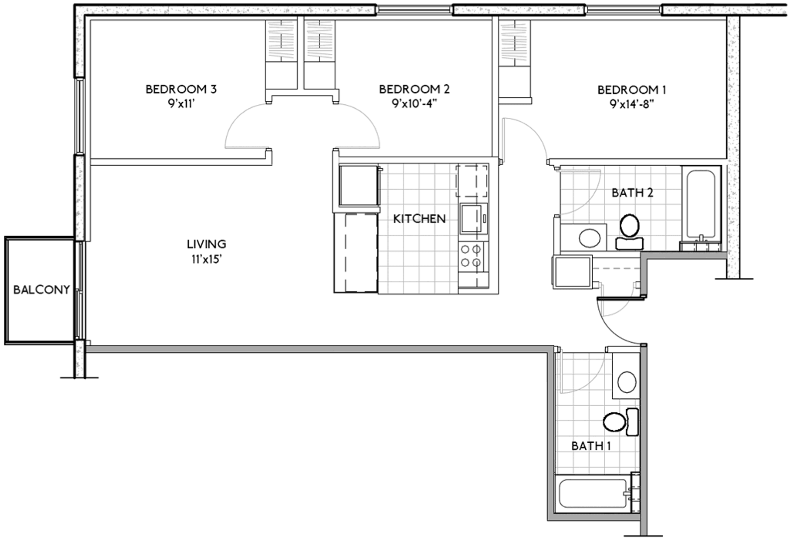 Super spacious 3bd/2ba units at Humbucker Apartments. Select units with identical floorplans include units: 410, 510, 610, 710 and 810)